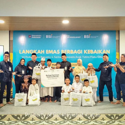Rayakan Milad Ke-5 BSI Maslahat bersama BSI UMKM Center Berbagi Paket Bingkisan Kepada Anak Yatim di